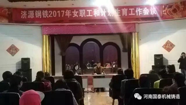 今天上午,在集團公司組織召開(kāi)的“濟源鋼鐵2017年女職工和計劃生育工作會(huì )議”上,工會(huì )女工部、計劃生育辦公室聯(lián)合授予我公司女工委員、計劃生育專(zhuān)干徐慧莉2016年度 “女職工和計劃生育工作先進(jìn)個(gè)人”光榮稱(chēng)號,機修車(chē)間女工李麗娟被評為2016度“五好文明家庭”。