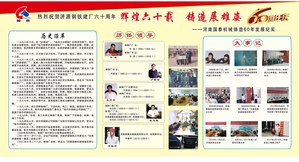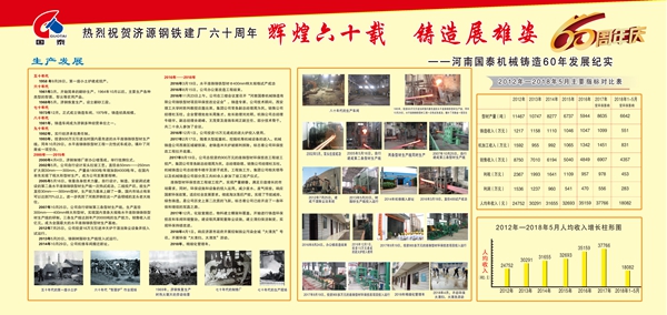 在濟源鋼鐵喜慶六十華誕之際,公司舉辦主題為“輝煌六十載 鑄造展雄姿”的六十年發(fā)展紀實(shí)版面展覽,為濟鋼六十年獻上一份獨特的厚禮。